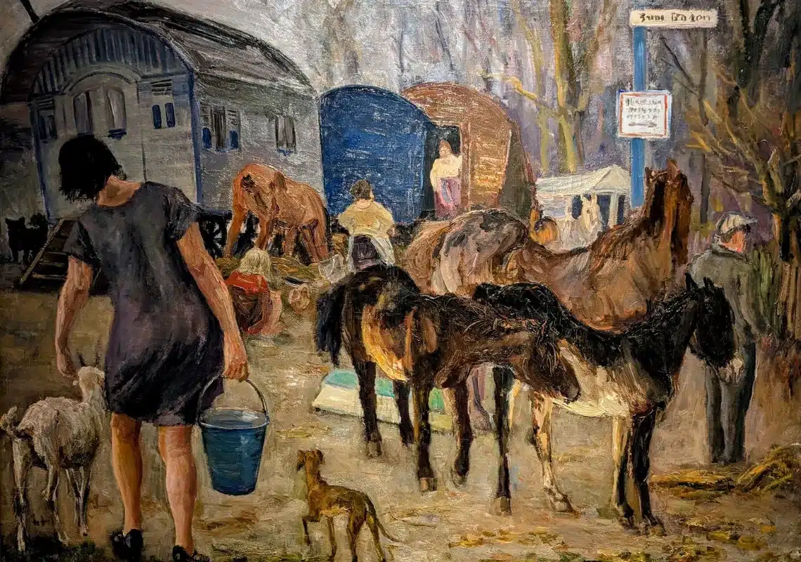 Manchmal stehe ich in einer Ausstellung und ein Bild lässt mich nicht mehr los. Nicht, weil es das lauteste oder bunteste im Raum wäre, sondern weil es mir eine Geschichte zuflüstert, die auf den ersten Blick gar nicht da ist. So erging es mir im Dachauer Bezirksmuseum, als ich vor einem Ölgemälde stand, das den schlichten Titel „Zigeuner“ trägt. Es zeigt eine Szene, wie sie romantischer kaum sein könnte: Wohnwagen stehen unter Bäumen, Pferde warten ruhig und eine Frau ist mit einer Ziege unterwegs. Der Maler Richard Huber hat diese Szene mit einem kräftigen, lebendigen Pinselstrich eingefangen. Die Farben sind erdig und gedeckt, man spürt förmlich die Stimmung eines längst…