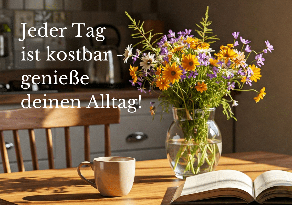 Ich weiß nicht, wie es Euch geht, aber ich musste erst lernen, den Alltag nicht als bloße Zwischenzeit zu sehen. Früher hatte ich oft dieses Gefühl, dass das echte Leben noch kommen würde – irgendwann, wenn etwas Besonderes passiert. Heute sehe ich das anders. Heute weiß ich: Das echte Leben findet genau hier und jetzt statt. In dem Moment, in dem ich morgens die erste Tasse Kaffee genieße. In der Umarmung, die vielleicht nur wenige Sekunden dauert, aber den ganzen Tag wärmt. In den kleinen Gesprächen, dem Lächeln eines Fremden, dem Geräusch von Regentropfen auf dem Fensterbrett.